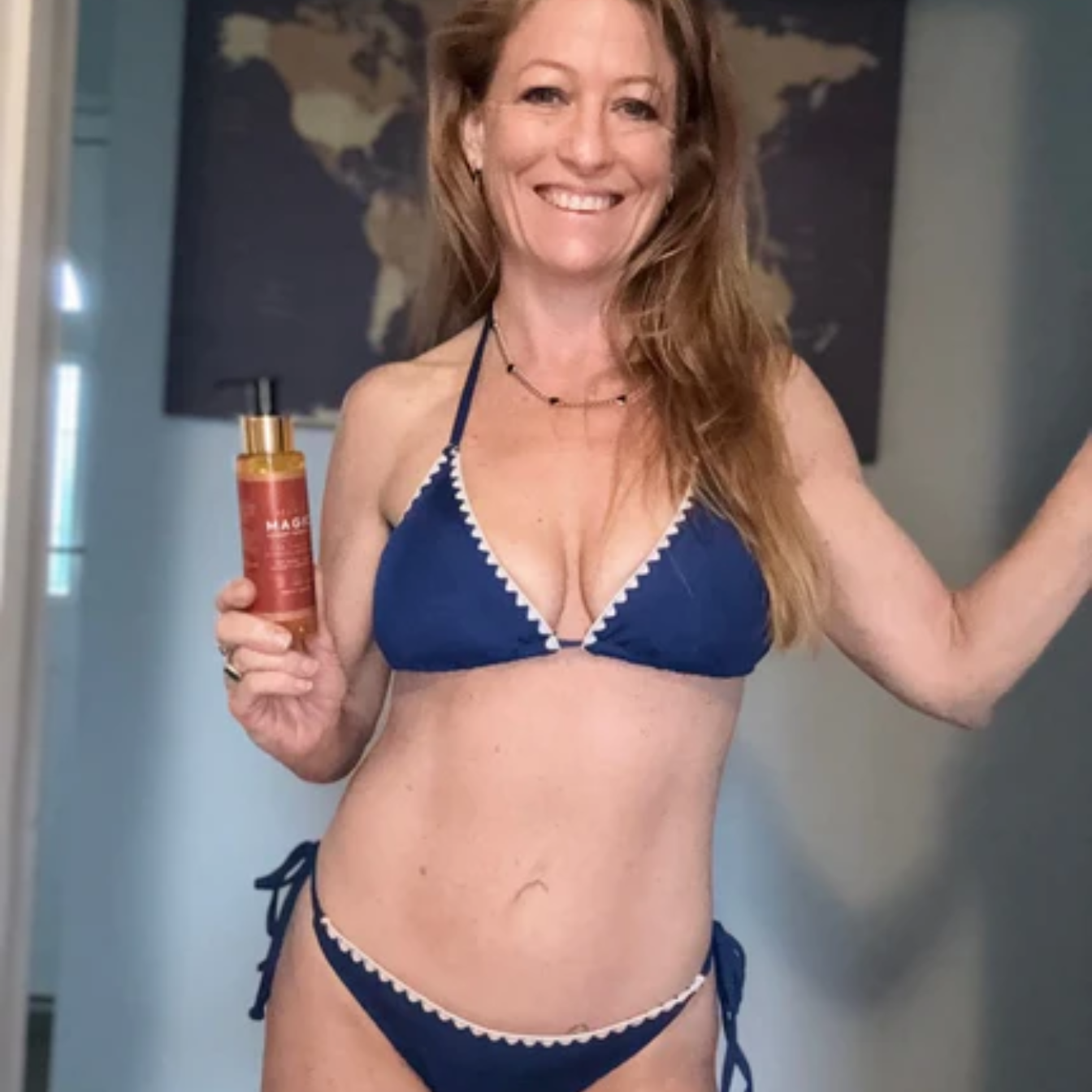 Je n’y aurais jamais cru un jour… mais me voilà, en vacances, fière dans mon bikini. Après quatre enfants, mon corps a changé mais grâce à cette huile, je me sens beaucoup mieux dans mon corps. Ma peau est douce, lumineuse, je me sens féminine, comme une reine.